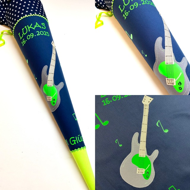 Für die musizierenden und musikalischen Erstklässler ist diese Schultüte genau das Richtige. Klavier, Gitarre, Schlagzeug, Trompete oder andere Instrumente können hier ihren Platz auf der Schultüte finden und in den höchsten Tönen gelobt werden. Ebenso könnt ihr mit dem Mikrofon ein Rockstar sein und für The Voice of Germany üben.
