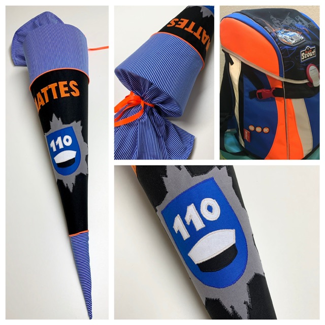 Die Lösch- und Leiterfahrzeuge der Feuerwehr löschen jedes Feuer und die Einsatzwagen der Polizei kommen mit lauter Sirene und Tatütata angesaust und fangen jeden Verbrecher! Die Einsatzautos auf der Schultüte sind sehr detailliert ausgearbeitet und die Stoffmuster und -farben sind auf Wunsch auf den Schulranzen abgestimmt.