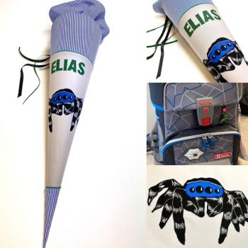 …nähen wir euch jede Art von Spinnentieren, die quer über die Schultüte ihr Spinnennetz spinnen. Vor diesen faszinierenden Spinnen allerdings braucht ihr keine Angst zu haben.