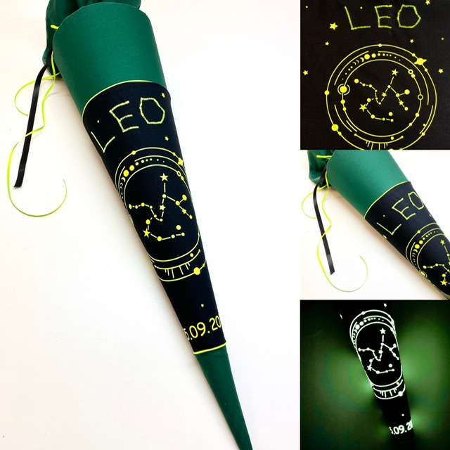 Glaubt ihr an Astrolgie? Dann seit ohr hier genau richtig! Leuchtende Sternzeichen bzw. Tierkreizeichen auf deiner Schultüte können positive Eigenschaften und Stärken deines Schulkindes zeigen. Kombiniert mit Mond und Sternen oder auch einem coolen Starfighter, kann diese Stofftüte zu etwas ganz außergewöhnliches werden. Die einzelnen Zeichen können auch als Stoff Applikation genäht werden.
