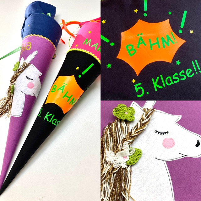 Die Farben und Stoffe können von der gezeigten Abbildung abweichen, die Bilder gelten nur als Beispiele! Ebenso können die Motive von dem Beispielbild abweichen, denn jede Applikation wird neu und individuell hergestellt. Um die Schultüten möglichst individuell zu halten, benötigen wir eine gewisse gestalterische Freiheit!